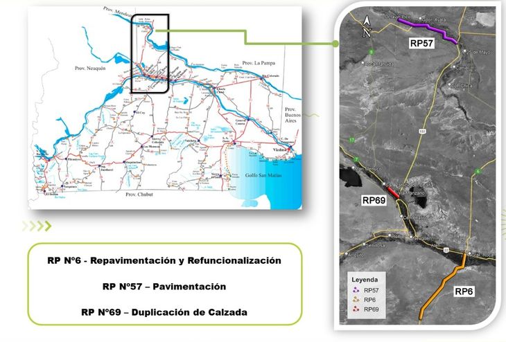 Son tres las obras prioritarias para Río Negro, que, a su vez, fueron consensuadas con autoridades de la provincia de Neuquén: la repavimentación de la Ruta Provincial N°6, la pavimentación de la RP N°57, y la duplicación de calzada de la RP N°69.