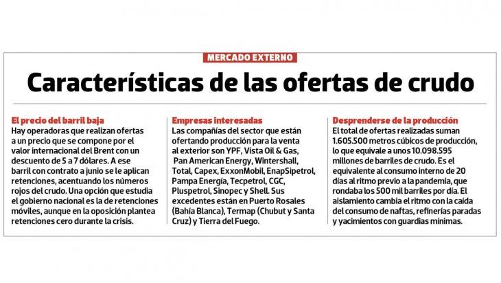Hay unos 10 millones de barriles que las empresas buscan exportar. Mientras tanto, tratarán de almacenarlos junto a puertos de embarque. Es la opción ante la caída del mercado interno por la baja demanda de combustibles.