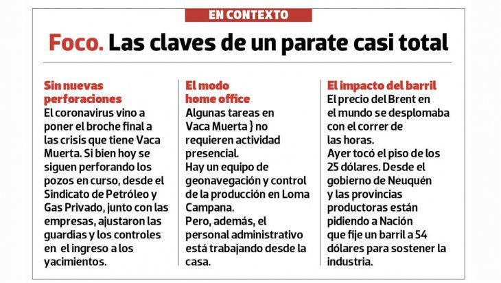 Desde el aire, Vaca Muerta ya no simboliza esa cola interminable de vehículos yendo a la misma hora a trabajar a los yacimientos. Es que el impacto de la crisis en el sector no vino solamente por la pandemia del COVID-19. Ya empezaba a impactar los tres meses del congelamiento en los precios de los combustibles, y el freno en el sector de producción. Hoy todo está en pausa.