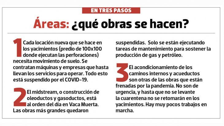 “Se están haciendo muy pocos trabajos, solo de mantenimiento y lo esencial. No sabemos cuánto va a durar esto, solo nos están llamando cuando hay algún problema puntual”, explicó una fuente del sector ligada a la construcción de las locaciones.