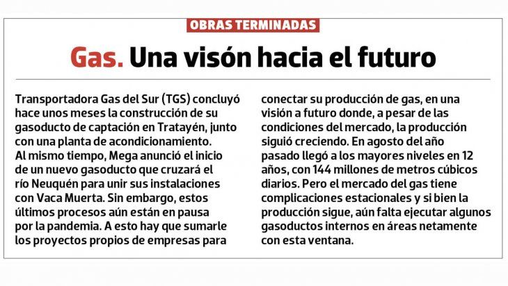 La apuesta de las operadoras a invertir en gasoductos y oleoductos para Vaca Muerta tenia una lógica por la suba de la producción hasta agosto del año pasado, cuando el gas llegó a un récord histórico de producción (más de 140 millones de metros cúbicos por día en Neuquén) y también el procesamiento de crudo. Incluso, la proyección al 2021, antes de la crisis del barril congelado (distorsión del precio interno por poner un techo a la suba de los combustibles), implicaba una proyección de casi quintuplicar la producción al 2030, con un cuello de botella en 2021. La hipótesis del cuello de botella para evacuar el petróleo de Vaca Muerta ya tiene una solución a corto plazo desde el año pasado cuando se inauguró el oleoducto que une Loma Campana con el Lago Pellegrini, por donde se evacua la producción del bloque de 11 áreas calientes.