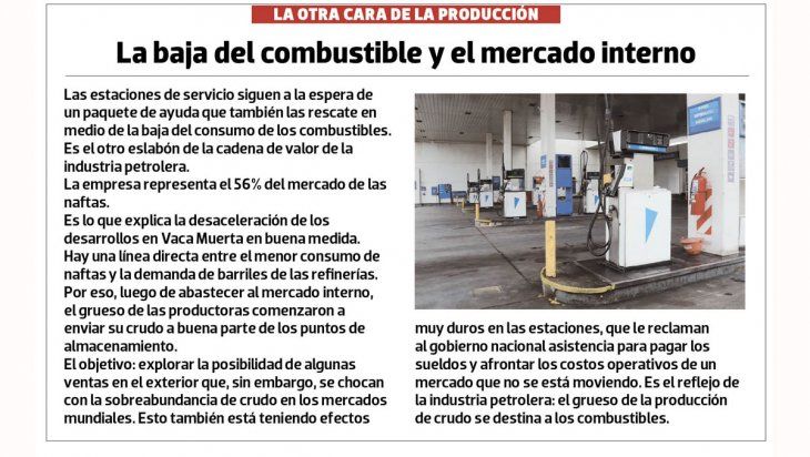 Las fuentes consultadas lo atribuyeron a la baja del consumo interno. Pero la situación no implicó el cierre de pozos. Tampoco la empresa recortó su producción de petróleo en Neuquén.