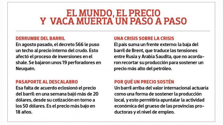 Para las provincias, el cuadro es complejo. En Neuquén, las regalías petroleras suponen el 35% de la recaudación provincial. Hoy son 3000 los empleados que rotan en sus puestos de trabajo para evitar despidos. El pedido de un precio sostén es una búsqueda de apuntalar una actividad que ya viene cayendo.