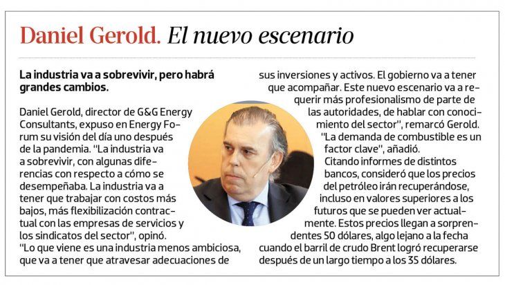“Este año está cerrado en términos de consumo. No vamos a ver proyectos nuevos ni grandes inversiones, porque va a haber falta de flujo de caja en las empresas como consecuencia del coronavirus”, dijo Julián Rojo, economista y miembro del Instituto Argentino de la Energía General Mosconi. “Después habrá que ver cómo se reconfigura el mercado internacional y qué capacidad tiene Vaca Muerta para adaptarse a un escenario de sobreoferta de crudo a nivel mundial”, agregó.