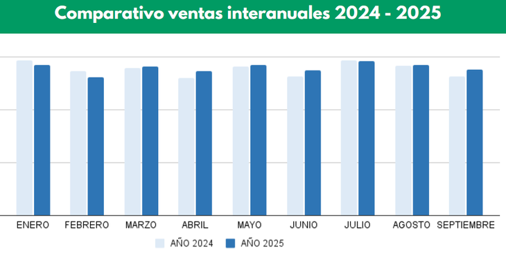 El consumo de combustibles en Argentina experimenta una recuperación sostenida. De acuerdo al informe de "Venta al público de combustibles", elaborado por el portal Surtidores, en septiembre 2025, las ventas totales alcanzan 1.376.837 m³, frente a 1.313.874 m³ en el mismo mes de 2024. Este incremento representa un 4,79% interanual. Mensualmente, la demanda creció un modesto 0,17% respecto a agosto 2025.