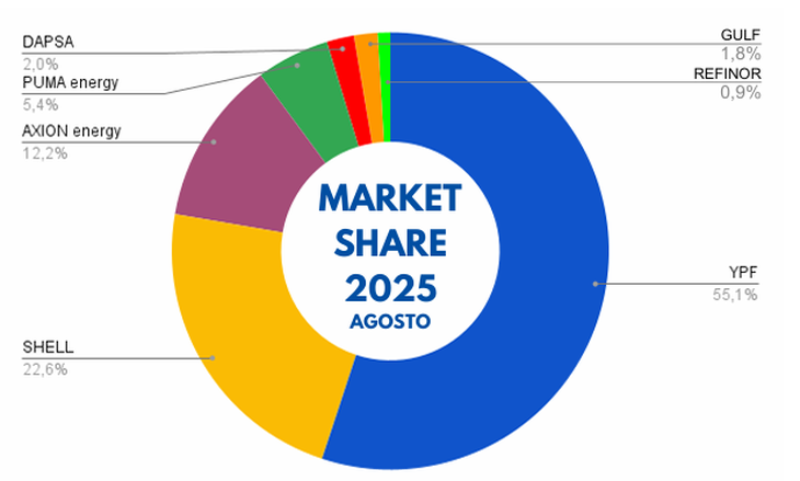 En el competitivo escenario de las empresas, Gulf se destacó con el mayor crecimiento interanual, alcanzando un 9,55%. Le siguió la líder del mercado, YPF, que registró una suba del 4,88% en sus ventas. En cuanto a las caídas, se destaca la performance de Refinor, que tuvo una merma de 13%, mientras que Shell y Puma bajaron -7,63% y 7,08% respectivamente.