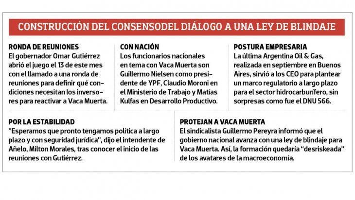 Sin embargo, se excusó en la imposibilidad de no poder dar precisiones: “No puedo adelantarme, pero lo está elaborando el gobierno nacional. Es la protección a la actividad para que no se cambien las reglas de juego, para que haya previsibilidad y para que las empresas vengan a invertir a la Argentina, que vengan a Neuquén, con todas las condiciones para hacerlo. Estamos despejando el camino”, expresó el responsable del Sindicato del Petróleo y Gas Privado de Río Negro, Neuquén y La Pampa.