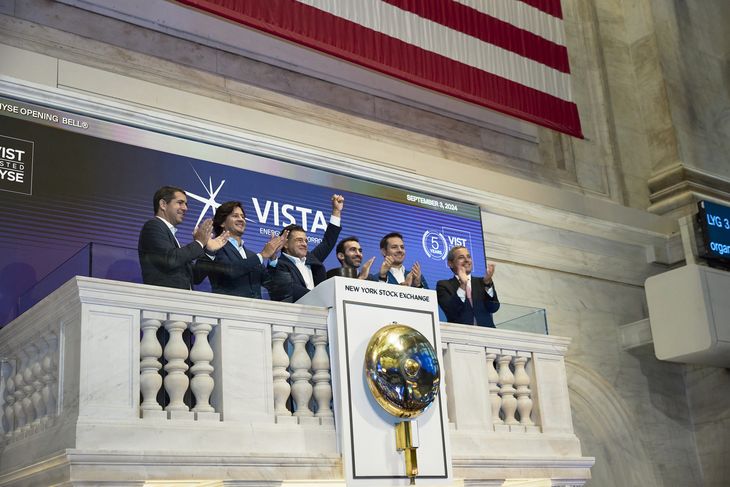 Miguel Galuccio, presidente y CEO de Vista, inició las operaciones del mercado en Estados Unidos con el emblemático toque de campana, en celebración del quinto aniversario de la compañía que él mismo fundó y que se consolidó como un vehículo de inversión directa a Vaca Muerta.