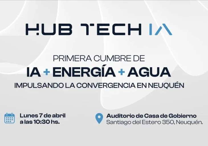 En este contexto, no sorprende que se acerque la “Primera Cumbre de IA, Energía y Agua”, titulada “Impulsando la Convergencia en Neuquén”, que se llevará a cabo este lunes a partir de las 10:30 en el Auditorio de la Casa de Gobierno.