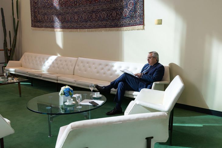El mandatario fue trabajando en su presentación conjuntamente con la elaboración del discurso que brindó hoy ante la asamblea de la ONU, donde pidió un "rechazo global" ante los "discursos extremistas" que buscan "erosionar a la democracia".
