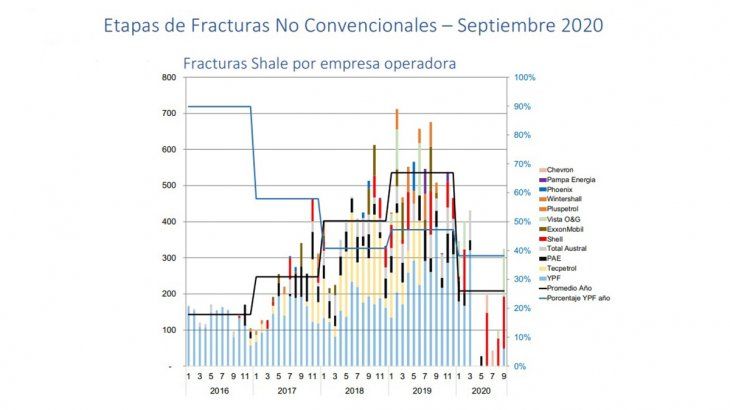 La producción en la pandemia desaceleró el número de etapas de fractura, que venía decayendo por la crisis argentina. El fracking es clave en la productividad.