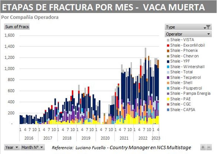TotalEnergies sumó 12 punciones y Vista cerró el registro con 7 fracturas. La empresa de Miguel Galuccio también evidenció una fuerte baja en su actividad ya que en marzo totalizó 127 operaciones.