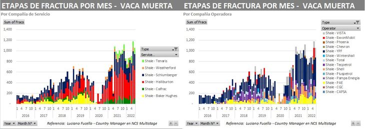 Asimismo, la empresa que más fracturas realizó en junio fue Halliburton con 540 operaciones, de las cuales 539 fueron para YPF y 1 para Shell. Schlumberger quedó en segundo lugar con 296 fracturas. Los guardapolvos azules desarrollaron 182 etapas para Vista y 114 para Total. El tercer lugar fue para Tenaris con 116 fracturas y todas fueron para Tecpetrol, del mismo Grupo Techint.