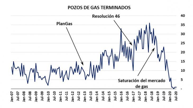 Desde el 2003, la producción de gas declinó hasta el 2014 debido a la falta de incentivo de precio para invertir. "Desde ahí viene revirtiendo la tendencia por la mejora en los precios y los incentivos a producción no convencional", repasa Ecolatina. Es que los pozos horizontales en las rocas shale aportan mucha producción inicial, que debe mantenerse con inversiones, perforación y fracking. El escenario de declino se advertía desde fines de 2019 y la pandemia sólo agravó la situación.