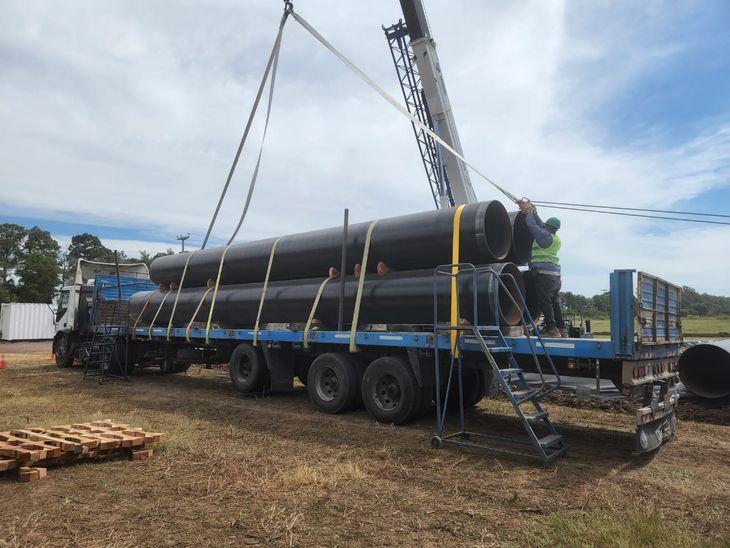 Se realizarán 2.500 viajes para transportar unos 10 mil caños para el Gasoducto de Integración Federal Tío Pujio- La Carlota.