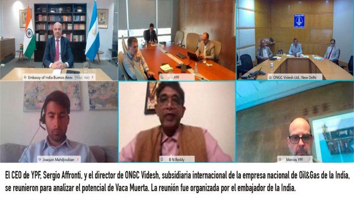 La embajada de la India en Argentina informó que "los dos gigantes estatales de energía exploraron oportunidades de cooperación" y analizaron "el potencial de Vaca Muerta", según consignó la agencia Télam.