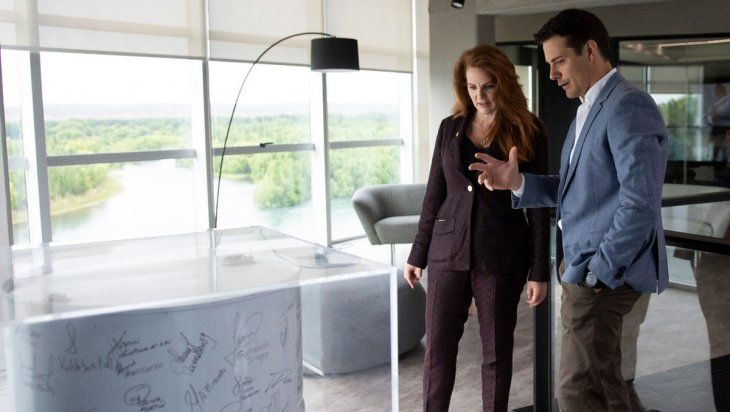 Vista prestó oficinas para la primera actividad de Noonan en su agenda neuquina. Por ese motivo, Matias Weissel, gerente de operaciones de la compañía que tiene en sus manos las áreas Bajada del Palo Oeste y Águila Mora, la invitó a recorrer la sede en Limay donde conservan a modo de trofeo su primer barril de shale oil.