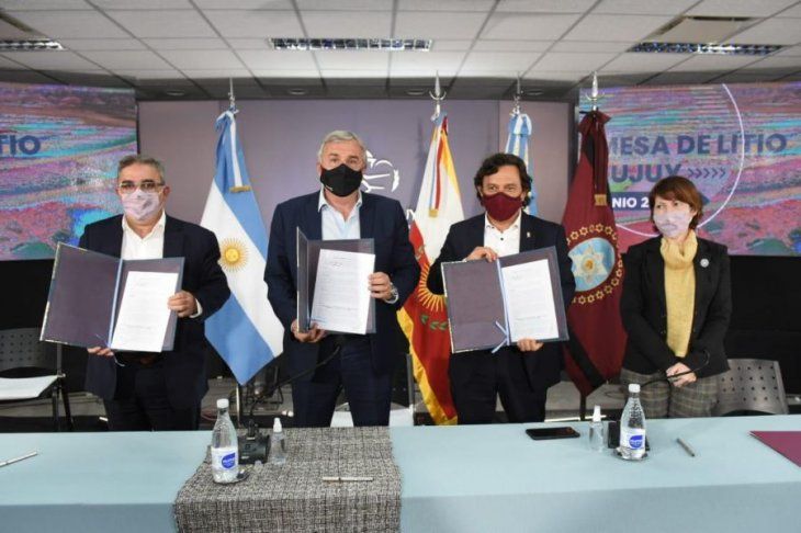 En la jornada, los mandatarios de Jujuy, Gerardo Morales; de Salta, Gustavo Sáenz; y de Catamarca, Raúl Jalil, suscribieron a un acuerdo de colaboración que determina los mecanismos para elevar, a través de un proyecto de ley, la conformación oficial de la Mesa Nacional del Litio a las legislaturas locales, a fin de reafirmar el marco institucional y establecer una política común.