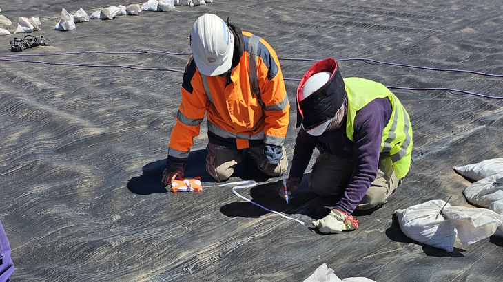 Uno de los hitos más relevantes del último período fue la finalización de la colocación de la geomembrana, un componente clave del sistema de impermeabilización de las áreas operativas del proyecto. Esta etapa resulta central de cara al futuro inicio de la producción y forma parte de las obras que son objeto de seguimiento por parte del Gobierno de Río Negro.