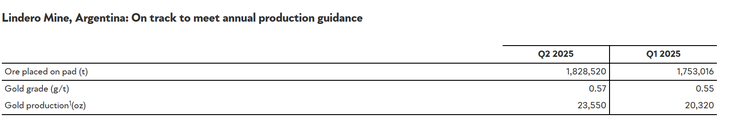 La minera canadiense Fortuna comunicó esta semana que durante el segundo trimestre de 2025 el proyecto Lindero en Salta, produjo 23.550 onzas de oro, lo que representa un aumento del 16% respecto al trimestre anterior gracias a una mayor ley de oro, mayor volumen de mineral depositado y la recuperación de inventarios no lixiviados. Es un dato muy alentador, ya que el reporte anterior había sido una bandera de alerta por la baja producción.