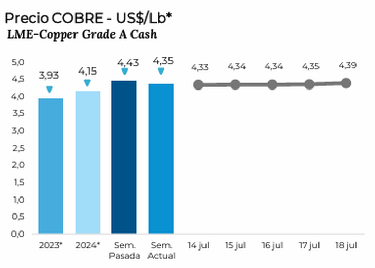 El mercado presentó cierta volatilidad tras el anuncio de nuevos aranceles estadounidenses sobre las importaciones de cobre; sin embargo, los precios lograron sostenerse por encima de los US$4,33 por libra, impulsados por una demanda internacional sólida, que continúa siendo el principal factor de soporte frente a las tensiones comerciales.