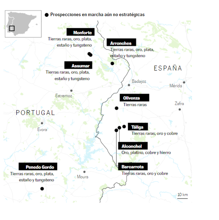El Gobierno regional de Extremadura promueve la minería como una vía para el crecimiento económico, citando "más de 1.000 indicios" viables. Actualmente, se evalúan siete nuevas excavaciones para extraer estaño y litio en la Sierra de Gata (Cáceres) y en Villanueva del Fresno y Barcarrota (Badajoz).