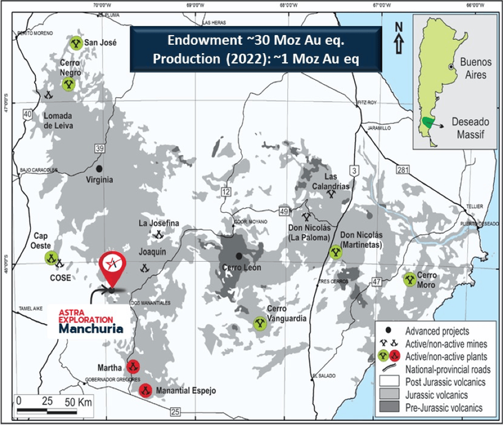 El proyecto La Manchuria se emplaza estratégicamente en la región centro-norte de Santa Cruz, dentro de la provincia geológica del Macizo del Deseado. Esta región es mundialmente reconocida por albergar operaciones mineras de clase mundial como Cerro Vanguardia, Cerro Negro, Don Nicolás y Cerro Moro.
