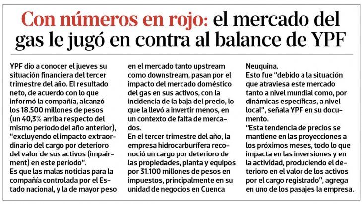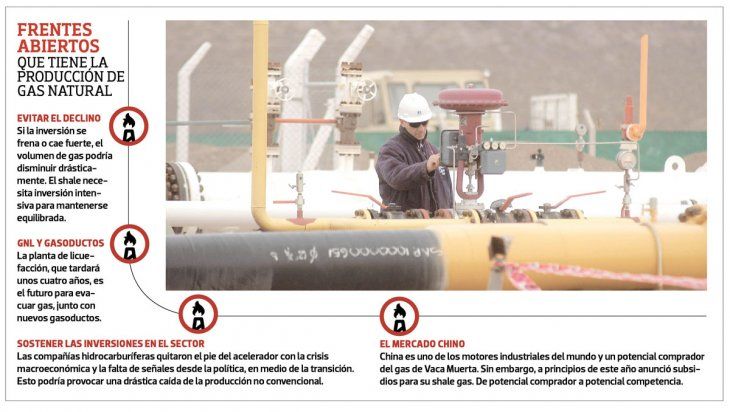 Los datos de producción y la curva de aprendizaje confirman el potencial de Vaca Muerta: hasta 2012, cuando se nacionaliza parcialmente YPF, el objetivo era conseguir el autoabastecimiento; desde 2016 el problema son los excedentes. Los planes para evacuar el recurso incluyen ampliar los gasoductos para el abastecimiento interno, las exportaciones sin interrupción a Chile y el GNL para hacer envíos al sudeste asiático.