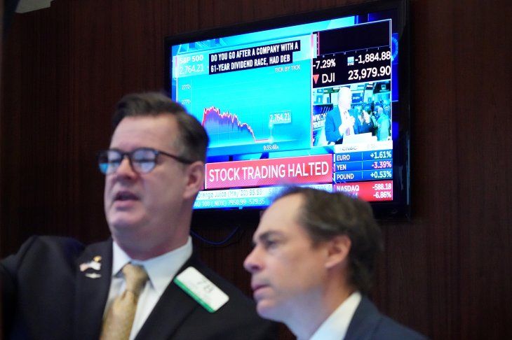 Las operaciones de Wall Street fueron suspendidas el lunes inmediatamente después de la apertura. El S&P 500 se hundió un 7% tras su caída de 5% del domingo.