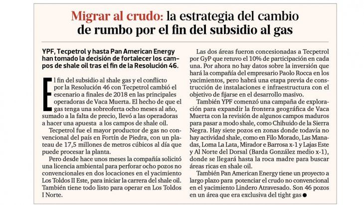 Un récord atado a un subsidio que terminó en juicio. Tecpetrol llegó a una producción de 15 millones de metros cúbicos por día y mantiene un litigio por los cambios en el subsidio al shale gas.