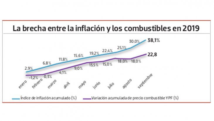 De acuerdo con los números que maneja la compañía, y a los que accedió +e, ya hay una brecha de 15,3% entre la inflación acumulada a septiembre y el precio de las naftas en el surtidor. Al no poder actualizar los valores, todos los meses se produce una sangría de financiamiento por las bajas en las ventas.