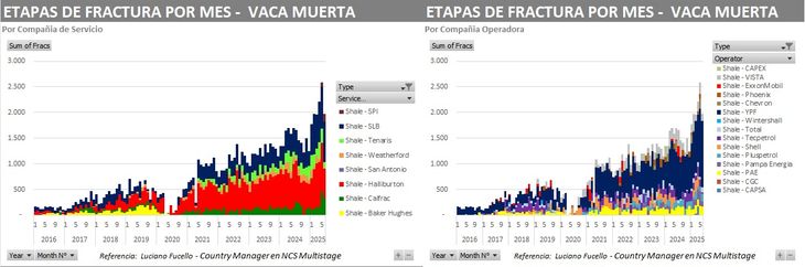 Si se suman las operaciones de SLB y Halliburton se obtiene un total de 1.368 etapas de fractura, lo que representa el 79% de los trabajos en Vaca Muerta.