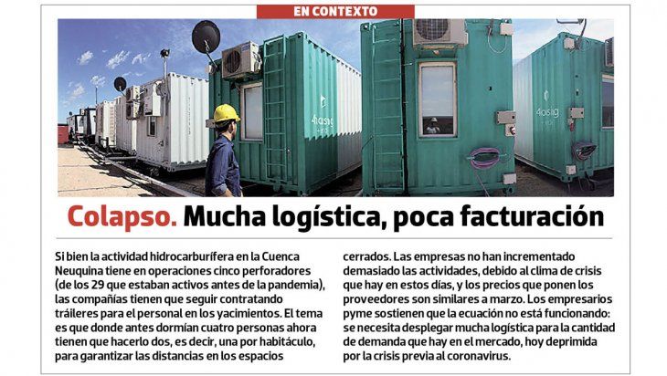 Traslados de personal hasta los yacimientos en dos vehículos, cuando antes lo hacían en uno, alquiler de varios tráileres para mantener el distanciamiento social y compra de elementos de seguridad sanitaria han encarecido el costo de los trabajos facturados, en un contexto donde casi no hay facturación.