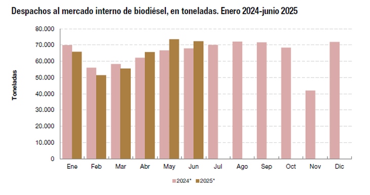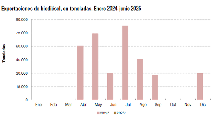 El dato más alarmante se encuentra en la cadena del biodiésel. La producción sufrió un desplome interanual del 30,8%, una cifra que por sí sola encendería todas las alarmas. Sin embargo, el golpe más fuerte se observa en el frente externo: durante todo el segundo trimestre de 2025, no se registraron exportaciones.