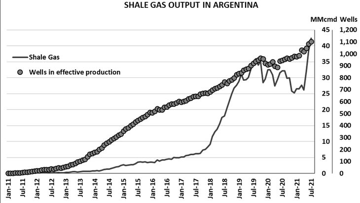 1. En agosto los yacimientos no convencionales produjeron 61,6 MMm3/d, lo que significa una cifra histórica para ese tipo de explotaciones. El incremento se explica por la suba en las áreas de Fortín de Piedra, Río Neuquén y Sierra Chata.
