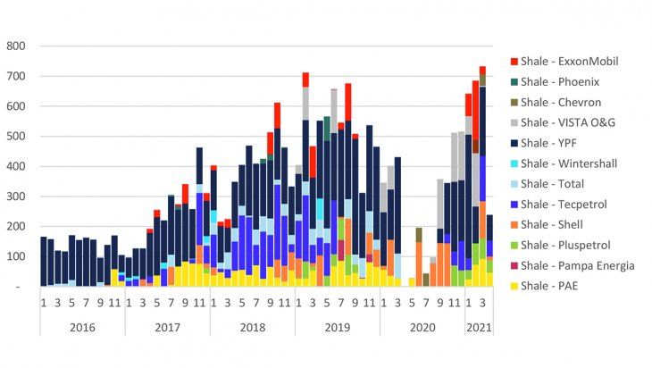 En el primer trimestre de este 2021, las tareas de estimulación hidráulica en la roca Vaca Muerta se ejecutaron a niveles récord, impulsadas por el nuevo Plan Gas, la recomposición del precio del petróleo y la terminación de pozos perforados antes de la pandemia del COVID-19.