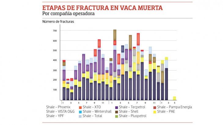 Un pronóstico que hacen en la industria es que este mes podría llegarse a las 200 o 250 etapas de fractura. El salto será cuando Shell culmine las tareas en Bajada de Añelo y se vean los resultados de Chevron en su yacimiento El Trapial, con Halliburton a cargo del set de fractura. Chevron incluso sumó un equipo de perforación en esa área de hidrocarburos no convencional. También hay que esperar novedades de YPF.