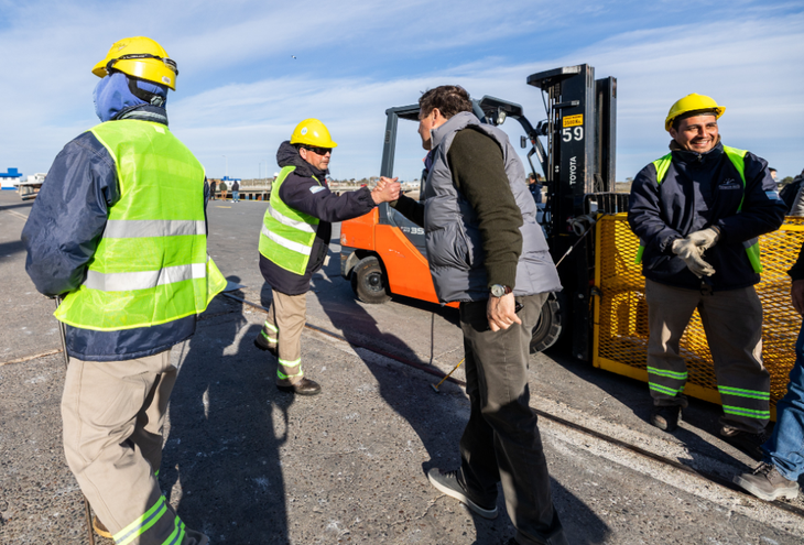 El operativo portuario se ejecuta a un ritmo acelerado, con cerca de 200 trabajadores en turnos extendidos, con el objetivo de concluir la descarga en tiempo récord. El plan logístico posterior prevé el traslado del material a Punta Colorada mediante 14 camiones diarios, donde se construirán cinco tanques de almacenamiento.