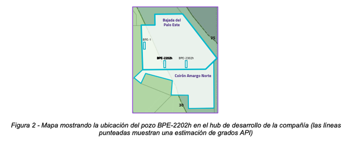 Los logros en el pozo BPE-2202h también permitieron reconfirmar la adición de 150 pozos al inventario de la compañía en esa área, y también extender el modelo geológico a Coirón Amargo Norte, el cual es el bloque lindante al sur, cubriendo una superficie de 26.598 acres brutos.