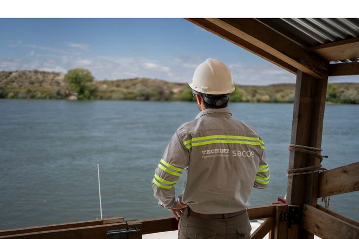 La UTE Techint–Sacde inició el cruce subterráneo del Río Negro, una pieza clave del oleoducto que conectará Vaca Muerta con el puerto de Punta Colorada.