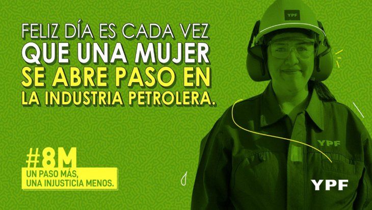 A partir del enunciado “un paso más, una injusticia menos”, el mensaje de YPF busca reforzar el sentido de lucha por la igualdad que tiene esta fecha en especial, y hace foco en las conquistas que sirven como puntapié para seguir trabajando en este camino: felices son los días en que las mujeres conquistan nuevos espacios.